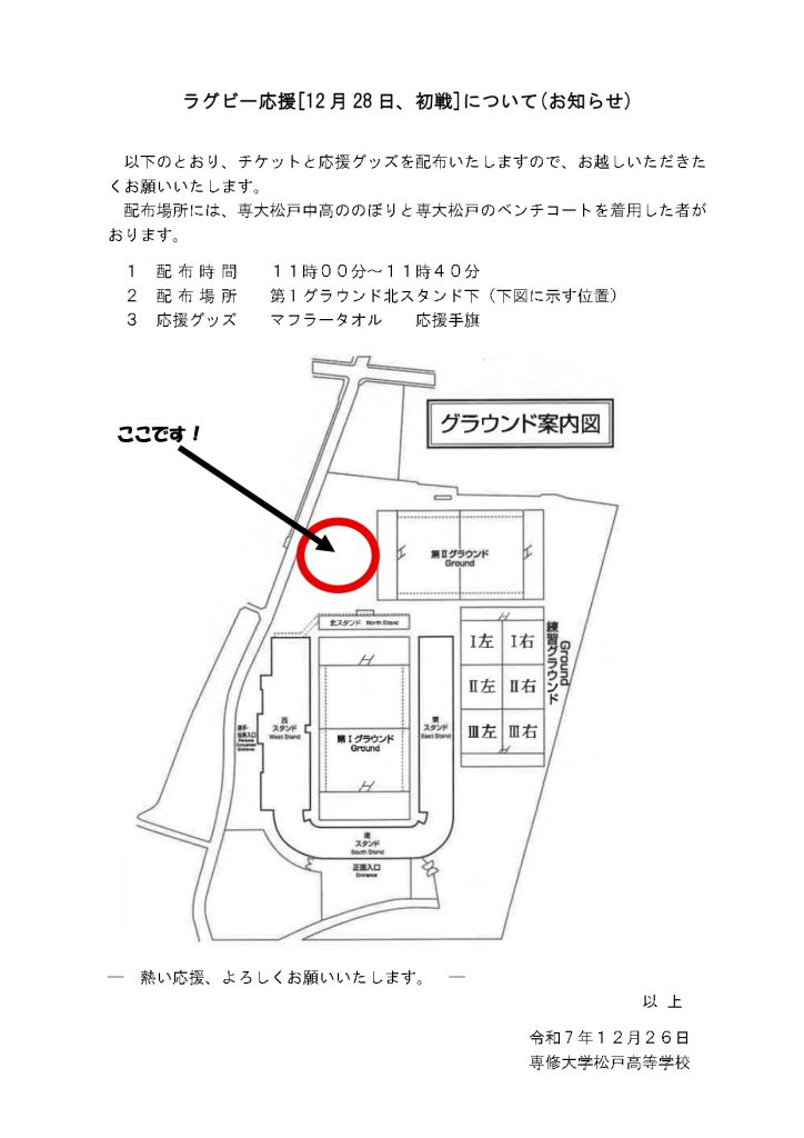先日は、専大松戸高校ラグビー部花園出場応援にお申込みいただきありがとうございました。