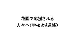 学校より、花園での応援に関して、下記の通りご連絡がありました。申し込みのメールもお送りいたしましたが、念のため、HPでも周知させて頂きますのでご確認の程宜しくお願い致します。同窓会事務局 以下本文----------------------...